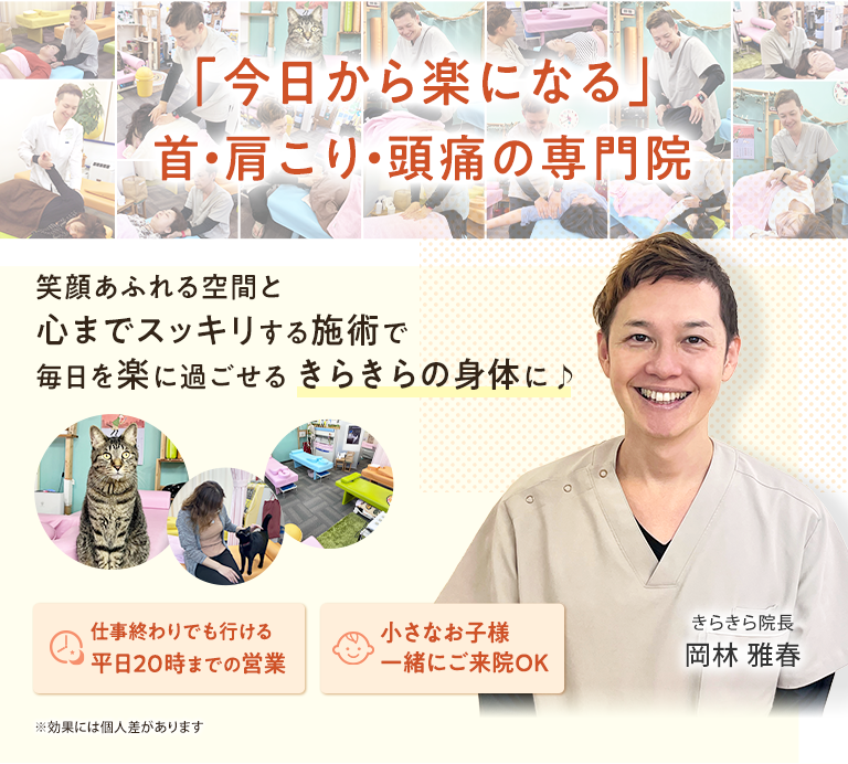 長年の悩みだった肩こり、頭痛が通院することですごく楽になりました。